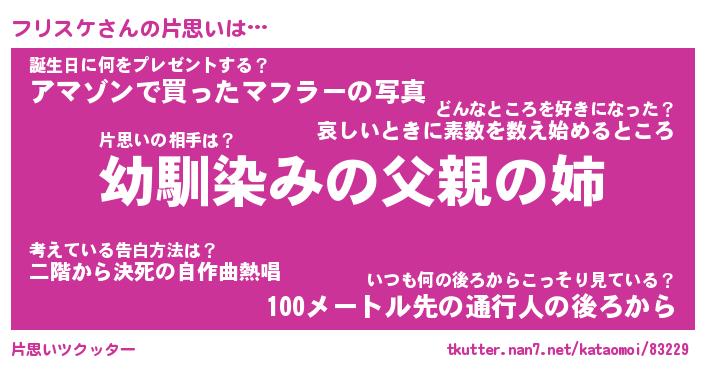 | 男性向けラノベタイトル風あだ名 | 『フリスケの憂鬱』 |