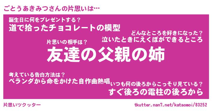 | 胡散臭い通販商品みたいなあだ名 | 『億万長者になれる水晶球…その名も「ごとうあきみつ」』 |