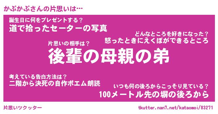 | ヘコむあだ名 | 『かぷふぇ~』『豆乳』『かぷ太郎』 |