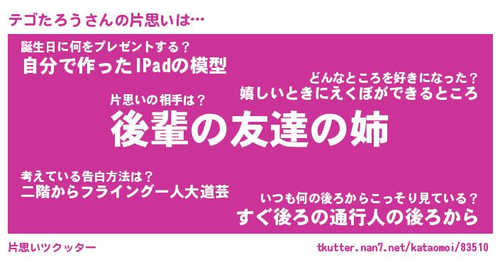 | ヘコむあだ名 | 『テゴっふぃ~』『つくし』 |