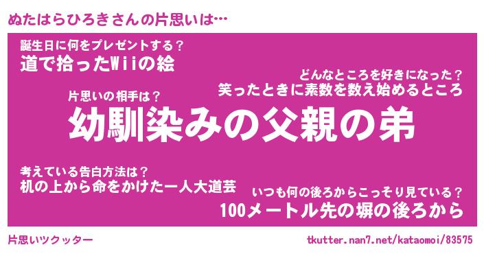 | 胡散臭い通販商品みたいなあだ名 | 『必ず成功するブレスレット…その名も「ぬたはらひろき」』 |