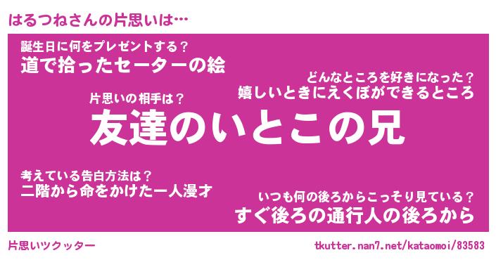 | ヘコむあだ名 | 『はるにゅー』『豆乳』『はるっちょ』 |