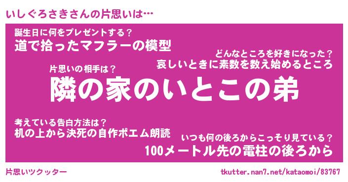 | 男性向けラノベタイトル風あだ名 | 『いしぐろさきの憂鬱』 |