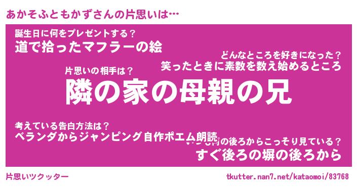 | 男性向けラノベタイトル風あだ名 | 『あかそふともかずの憂鬱』 |