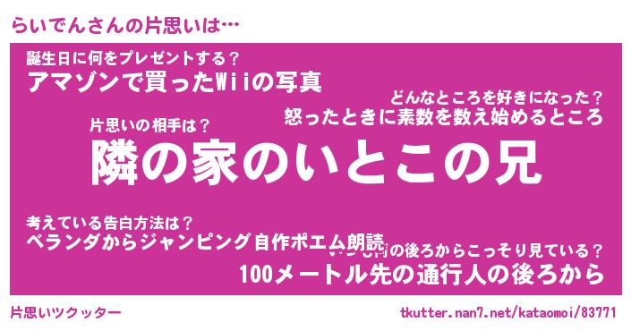 | ヘコむあだ名 | 『らいもー』『牛乳』『らいを』 |
