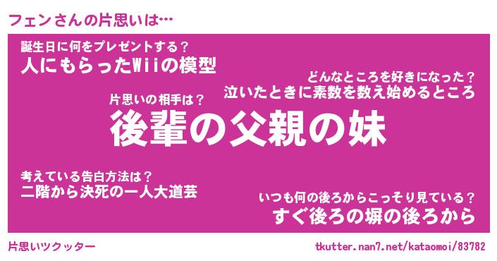 | ファンタジー風あだ名 | 『フェフェル』『エターナルフェンー』 |