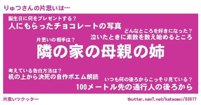 | 胡散臭い通販商品みたいなあだ名 | 『必ず成功するブレスレット…その名も「りゅつ」』 |