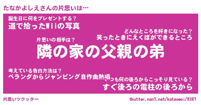 | ヒーロー風カッコイイあだ名 | 『スーパータナカヨシエ』『炎刃騎士タナ』 |