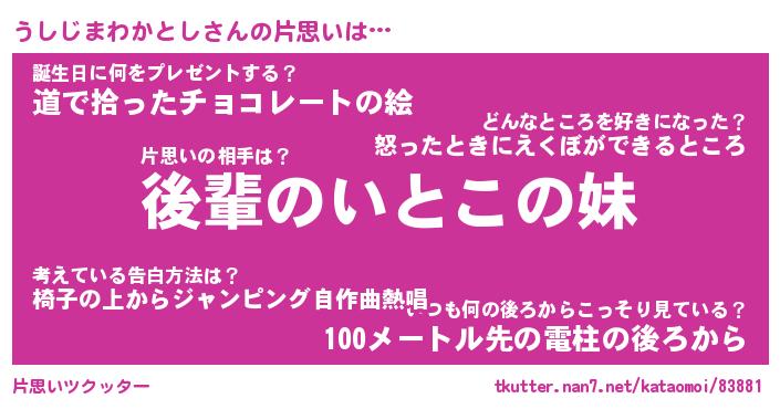 | ヘコむあだ名 | 『うしもー』『つくし』『うしぷりん』 |
