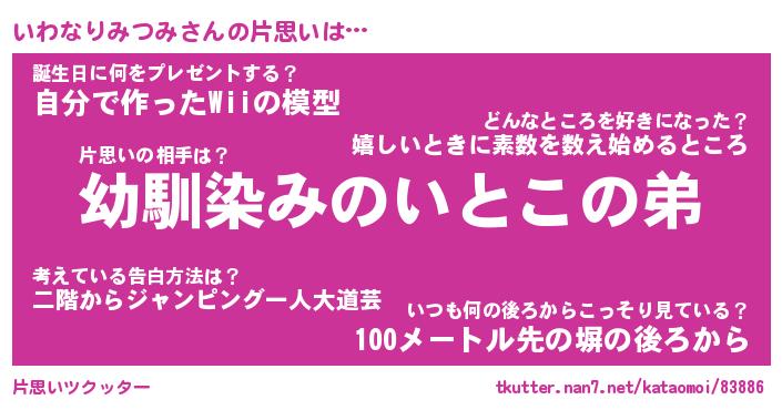 | ヘコむあだ名 | 『いわもー』『つくし』『いわっぺ』 |