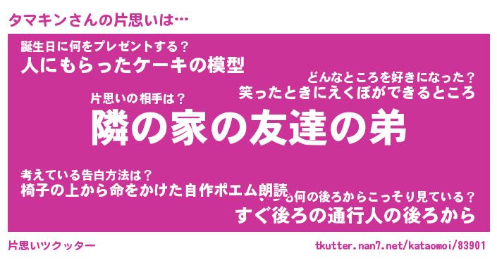 | 意味不明あだ名 | 『ペロリンタマキン』『永久保存タマキン』 |