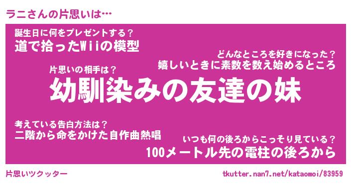 | ヘコむあだ名 | 『ラニっふぃ~』『豆乳』『ラニお』 |