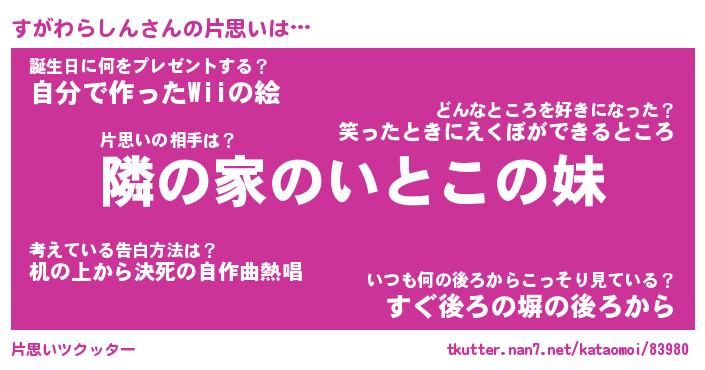 | 胡散臭い通販商品みたいなあだ名 | 『必ず成功する水晶球…その名も「すがわらしん」』 |