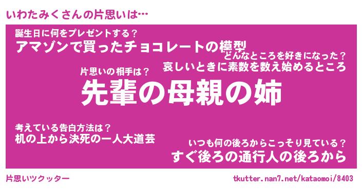 | ファンタジー風あだ名 | 『イワフェル』『エターナルイワタミクー』 |