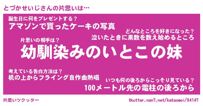 | ヘコむあだ名 | 『とづにゅー』『牛乳』『とづ太郎』 |