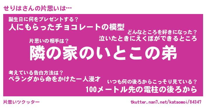 | 意味不明あだ名 | 『ペロリンせりは』『せりはフォーエバー』 |