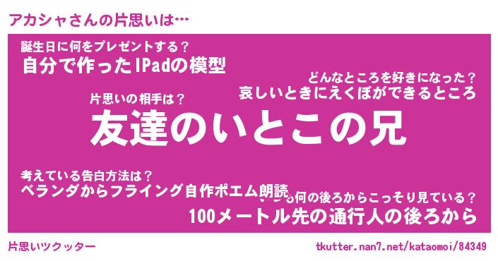 | 意味不明あだ名 | 『ペロリンアカシャ』『永久保存アカシャ』 |