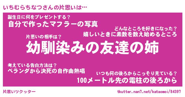 | 男性向けラノベタイトル風あだ名 | 『いちむらちなつの憂鬱』 |