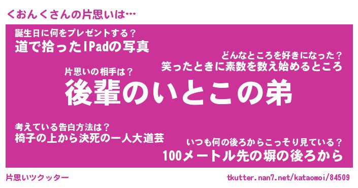 | ヘコむあだ名 | 『くおにゅー』『豆乳』『くおっちょ』 |