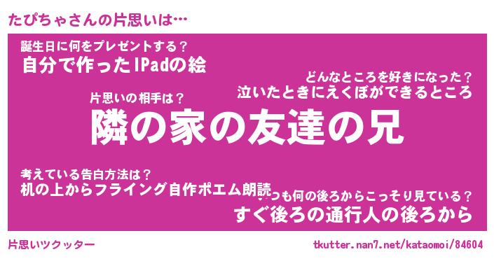 | ヘコむあだ名 | 『たぴっふぃ~』『つくし』 |