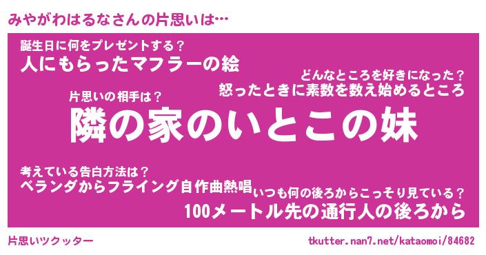 | 恥ずかしいあだ名 | 『プリティーみやがわはるな』『みやちん』 |