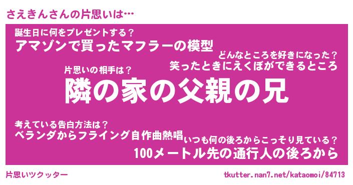 | 胡散臭い通販商品みたいなあだ名 | 『モテモテ間違いなし水晶球…その名も「さえきん」』 |