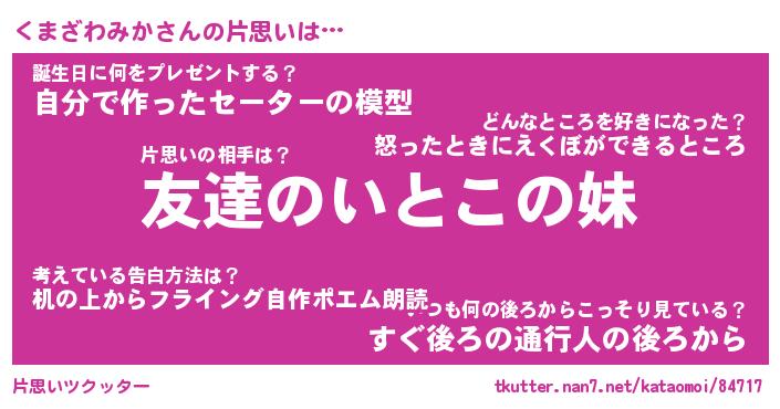 | ヘコむあだ名 | 『くまにゅー』『つくし』 |
