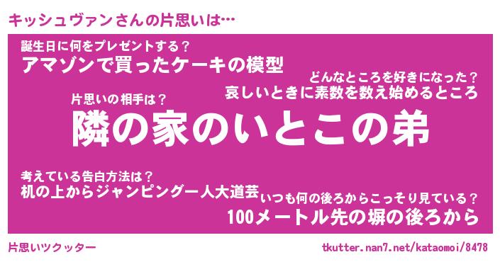 | 男性向けラノベタイトル風あだ名 | 『キッシュヴァンの憂鬱』 |