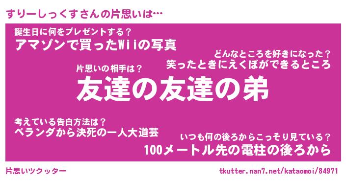 | ヘコむあだ名 | 『すりっふぃ~』『豆乳』『すりを』 |