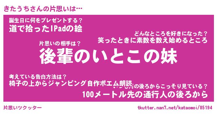 | ヘコむあだ名 | 『きたにゅー』『豆乳』『きたっちょ』 |