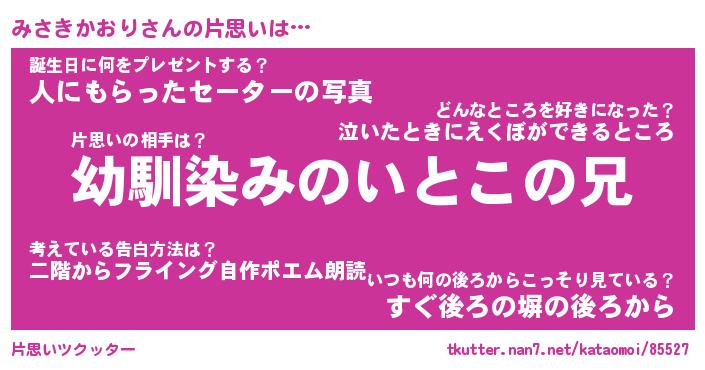 | 男性向けラノベタイトル風あだ名 | 『みさきかおりの憂鬱』 |