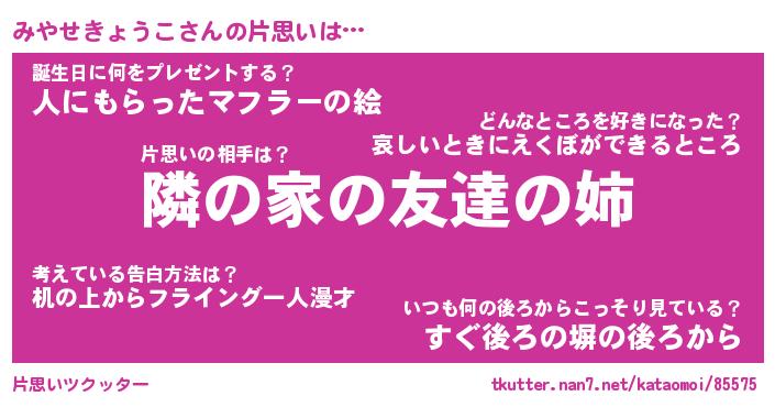 | ヘコむあだ名 | 『みやっふぃ~』『酢こんぶ』 |