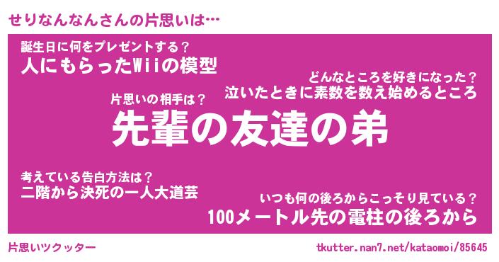 | 胡散臭い通販商品みたいなあだ名 | 『モテモテ間違いなし霊験あらたかなお札…その名も「せりなんなん」』 |