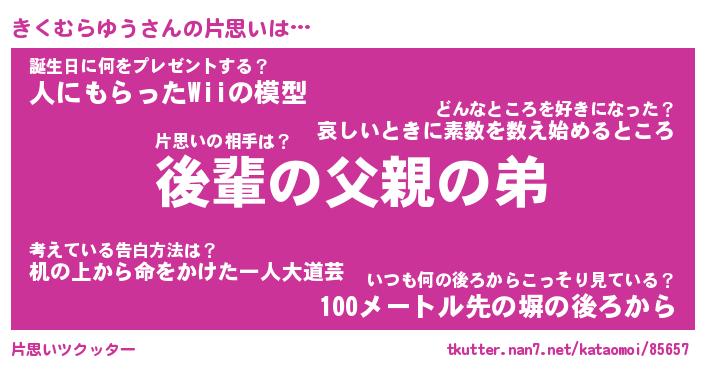 | 胡散臭い通販商品みたいなあだ名 | 『億万長者になれるブレスレット…その名も「きくむらゆう」』 |