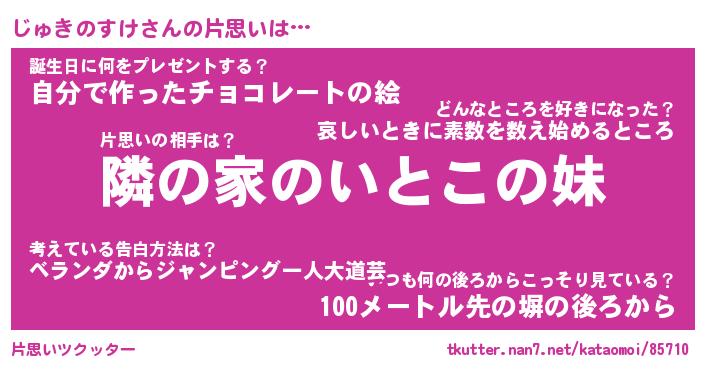 | 男性向けラノベタイトル風あだ名 | 『じゅきのすけの憂鬱』 |