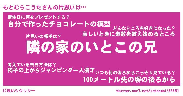 | 男性向けラノベタイトル風あだ名 | 『もとむらこうたの憂鬱』 |