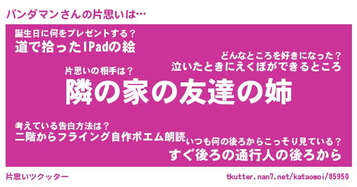 | 男性向けラノベタイトル風あだ名 | 『パンダマンの憂鬱』 |