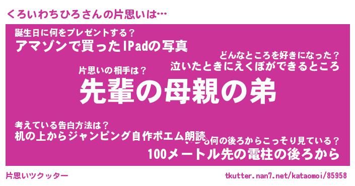 | 胡散臭い通販商品みたいなあだ名 | 『モテモテ間違いなしブレスレット…その名も「くろいわちひろ」』 |