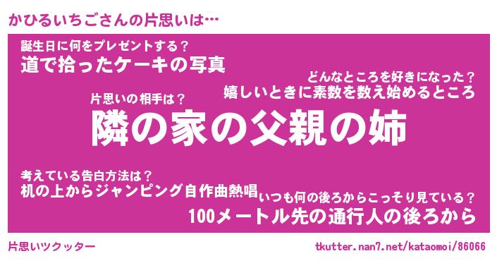 | 胡散臭い通販商品みたいなあだ名 | 『必ず成功するブレスレット…その名も「かひるいちご」』 |