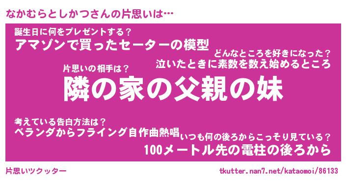 | 意味不明あだ名 | 『ペロリンなかむらとしかつ』 |