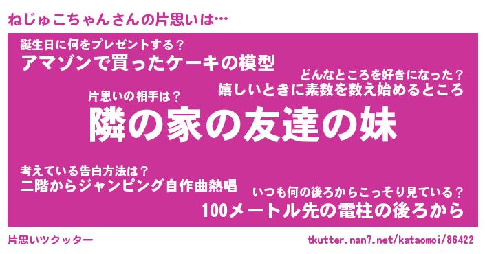 | 男性向けラノベタイトル風あだ名 | 『ねじゅこちゃんの憂鬱』 |