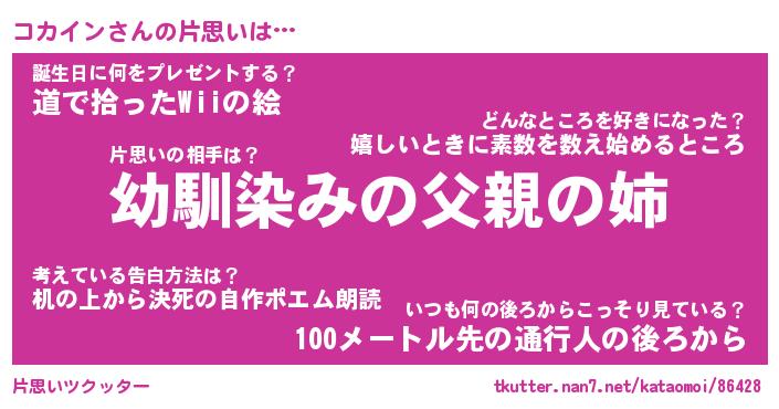 | 男性向けラノベタイトル風あだ名 | 『コカインの憂鬱』 |