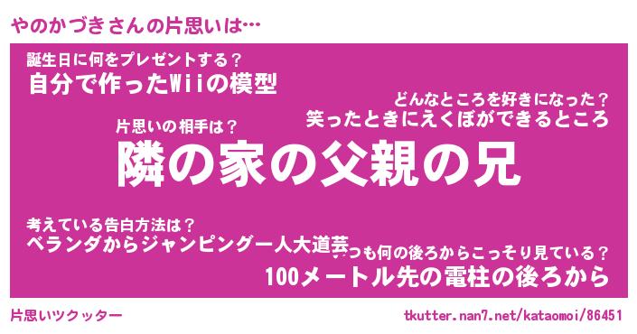 | 胡散臭い通販商品みたいなあだ名 | 『必ず成功するブレスレット…その名も「やのかづき」』 |