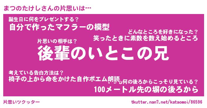 | ヒーロー風カッコイイあだ名 | 『スーパーマツノタケシ』『銀牙騎士マツ』 |