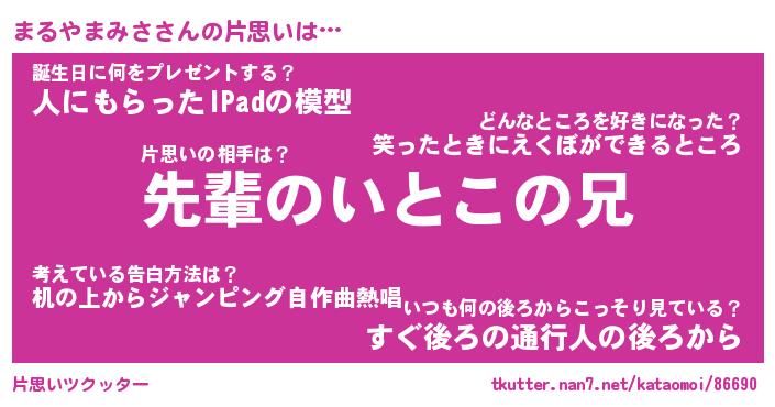 | 胡散臭い通販商品みたいなあだ名 | 『モテモテ間違いなし水晶球…その名も「まるやまみさ」』 |