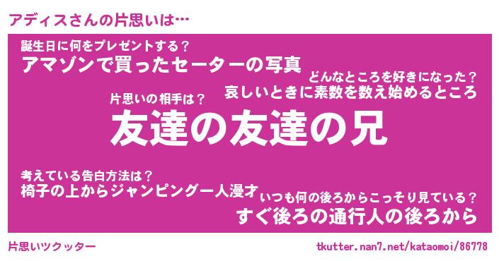 | 意味不明あだ名 | 『ペロリンアディス』『永久保存アディス』 |