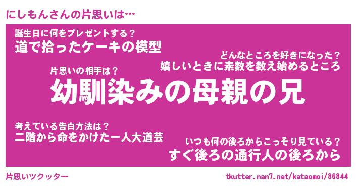 | 男性向けラノベタイトル風あだ名 | 『にしもんの憂鬱』 |