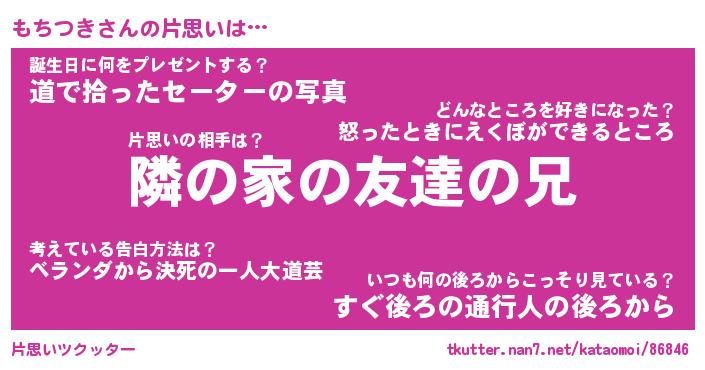 | ヒーロー風カッコイイあだ名 | 『スーパーモチツキ』『魔戒騎士モチ』 |