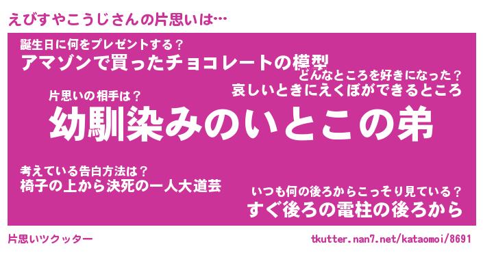 | ヘコむあだ名 | 『えびにゅー』『なまこ酢』『えびお』 |