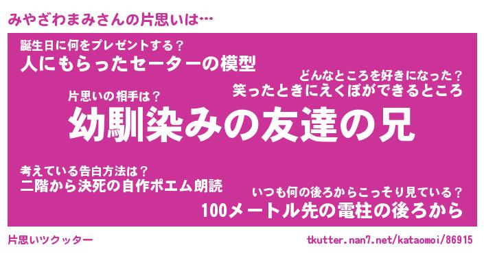 | 男性向けラノベタイトル風あだ名 | 『みやざわまみの憂鬱』 |